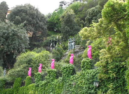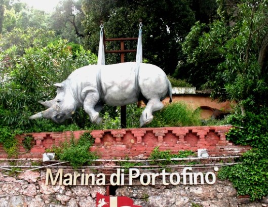 If you haven’t been to Portofino in as a long a time as it’s been for me, you too might be surprised to see the several amusing additions to the sculpture garden above the port. I’m not quite sure what they mean, but they are very funny.