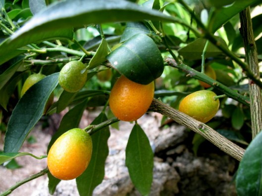 “The plant is native to south Asia and the Asia-Pacific,” continues Wikipedia. “The earliest historical reference to kumquats appears in literature of China in the 12th century. They have long been cultivated in Japan, Taiwan, the Philippines and southeast Asia. They were introduced to Europe in 1846 by Robert Fortune, collector for the London Horticultural Society, and shortly thereafter into North America.” Their late arrival may account for the fact that they are not a particularly well-known or frequently grown garden tree in America. And their unusual taste guarantees that they are not going to be in a bowl on everyone’s table.