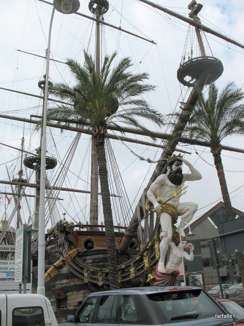 Before leaving for the States we met our Genovese cousins at Vitturin to enjoy some seafood and some of the restaurant’s well-known focaccia col formaggio (quite unlike the more usual bready styles of focaccia). Once inside the restaurant we were amazed to see the enormous paddle-wheel apparatus that delivers meals from the kitchens below to the diners above.