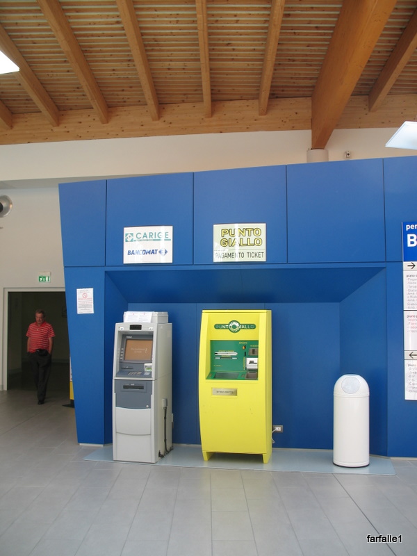 In Italy you pay ‘a ticket’ for medical attention – not always, but frequently. For instance, I went to the hospital for a rather run-of-the-mill test, for which I was charged € 25. If I had not already paid the ticket when I made the appointment at the health services office, I could have paid at the machine on the right. No ticket, no test. If you’re short of cash there is a bancomat (ATM) right there on the left.