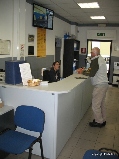 So all in all, it turned out to be not terribly interesting in terms of being ‘different’ – but it’s always fun to visit any Italian office and jaw with the people there. Here is Speedy discussing this and that with the very cheerful and helpful Francesca: