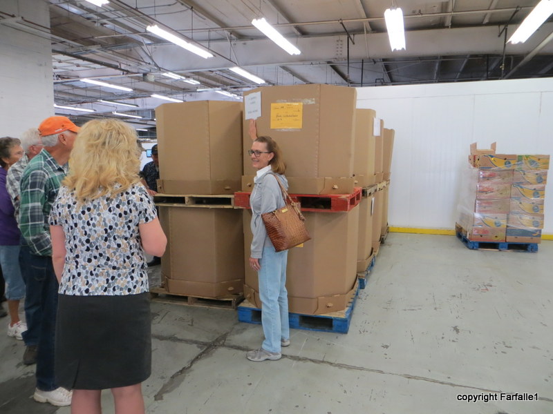Well no, Expatriate. That’s not quite how it is. You may remember reading about the great fun we have picking fruit for the food bank on winter Fridays. It was the subject of a post here at just about this time last year. This year a group of us pickers had the great good fortune to be given a tour of the United Food Bank (for whom we pick), an operation that is almost the exact opposite of my imagined picture.
