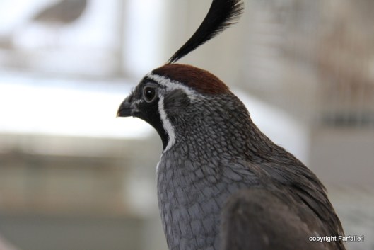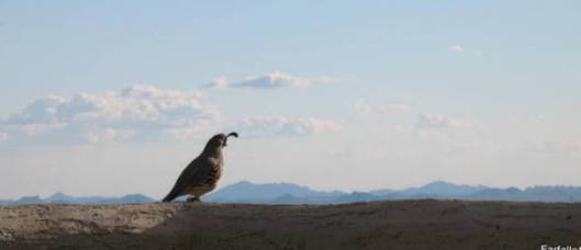 The two birds I love seeing the most are the peach-faced lovebirds which are native to arid regions of Africa and the Phoenix area. They are popular pet birds, and some most have escaped around here; clearly they’ve been successful in adapting to Arizona life. They are colorful and congregate in groups; they are tremendously chatty. It’s not at all unusual to be lining up your golf shot and have a lovebird zoom in front of you about three feet away. Doesn’t this guy have an impish expression??