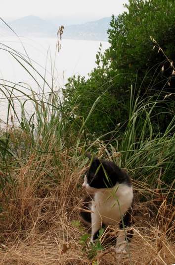There is not a lot of commercial activity at Punta Chiappa. Once upon a time a lot of ship related iron work was done there, but no more. You can still see the small cranes that moved heavy anchors and so forth, mounted on the side of the path. There are several great looking restaurants there. I’ve never eaten at one, but it’s now on my list of things to do. There is also, a bit further on, a restaurant for cats.