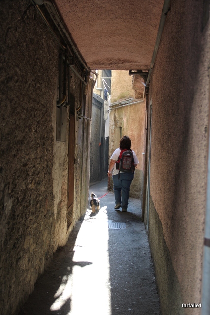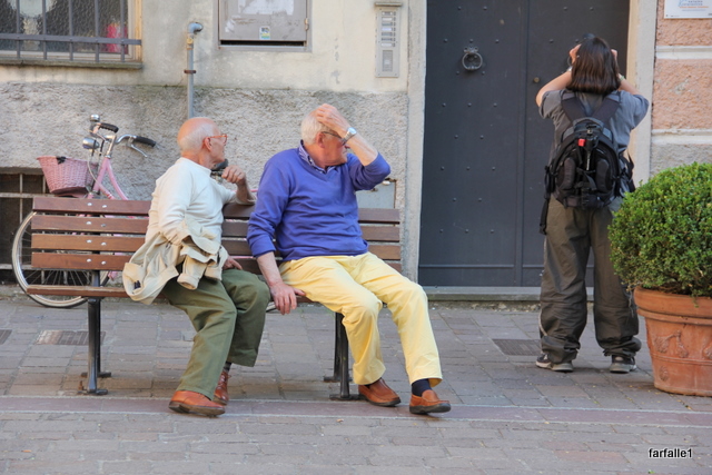 Here are some photos of that brief visit. An amusing event while we were there: a pair of old gents on a bench in the piazza kept staring at Michela as she took pictures – I couldn’t figure out why. It turned out they just wanted to be sure she knew about the medieval bridge and would go there to take photos. In fact, the man in the yellow pants followed us to make sure we did just that!