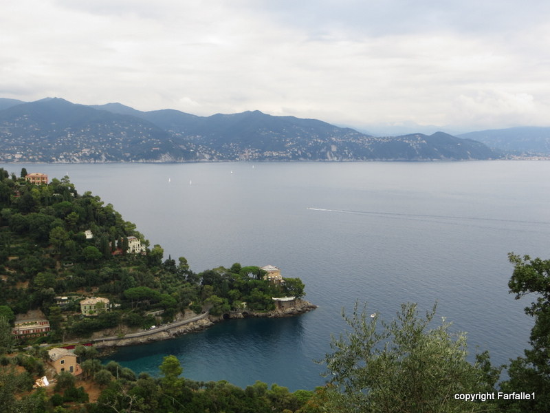 From Punta Chiappa there is a fine view back towards Camogli and the big hills behind it; down the coast to Genova and perhaps, on a clear day, the French Riviera; and to the southeast the continuation of the Portofino peninsula.