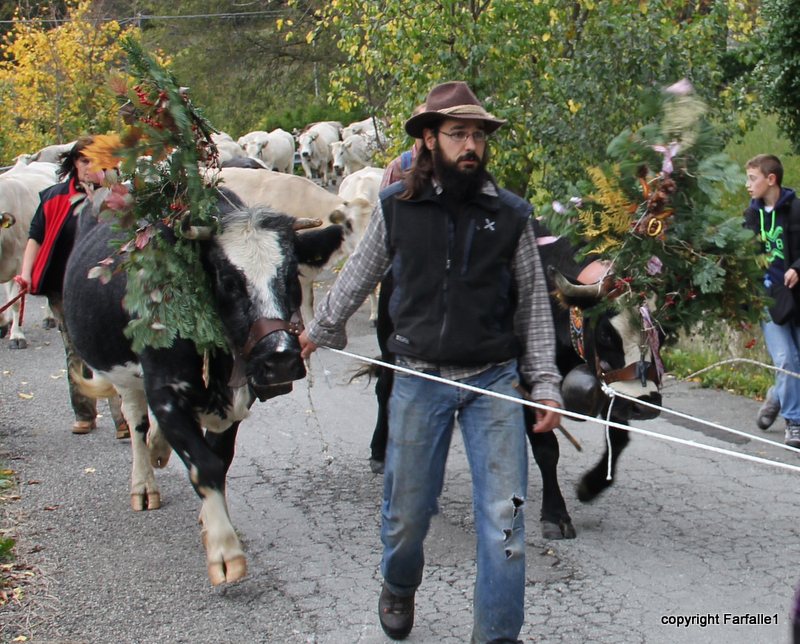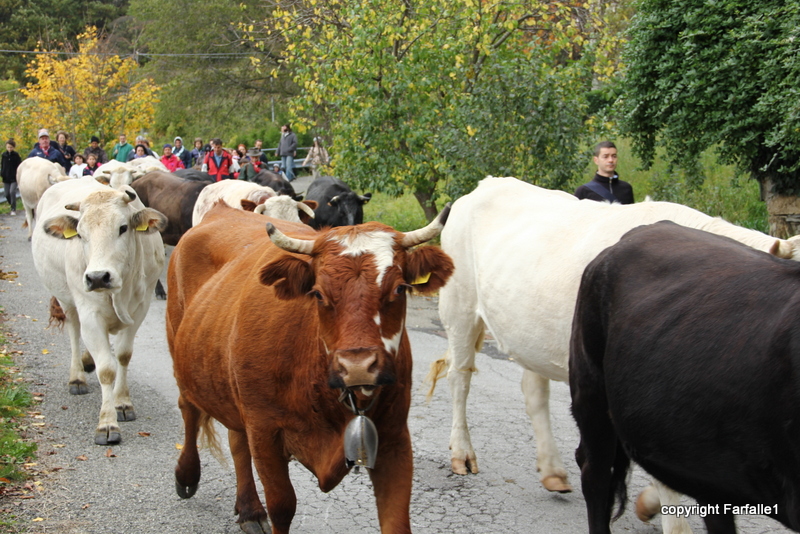 Cows weren’t the only beasts being brought down from the hills. There was a fine collection of sheep, interspersed with goats, that were put in a field across the road from the cows. I should mention that almost every single animal was wearing a bell – what with the shouting of the herders, the clanging of the bells and the bellowing and bleating of the animals there was a fine cacophony.