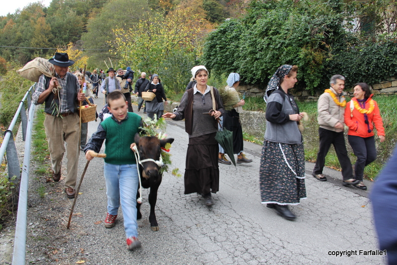 There was a lot more going on during the festa – a large array of vendors had local (and some not so local) crafts for sale; there was an excellent exhibit of tractors, old and new; there was a photo exhibit in a tram car that for decades carried sick people from Biella to Oropa for blessings and cures; in the church there was a display of preseppe (creche scenes) from all around the world (my favorite: the one from a nearby village made from marzipan); there was music. If you would like to see some pictures of these things, in addition to more pictures of the animals, please click here (for a slide show click the icon in the upper right that looks like a couple of small rectangles).