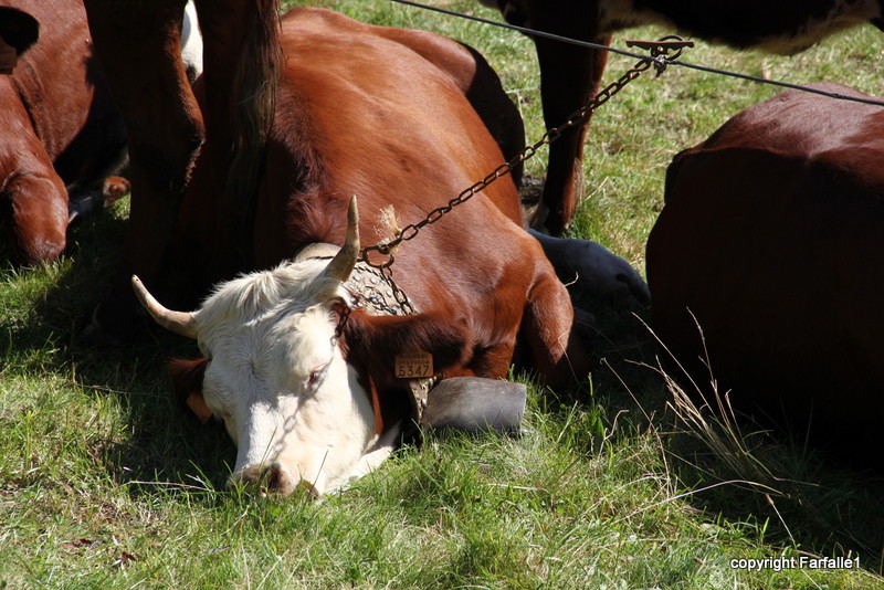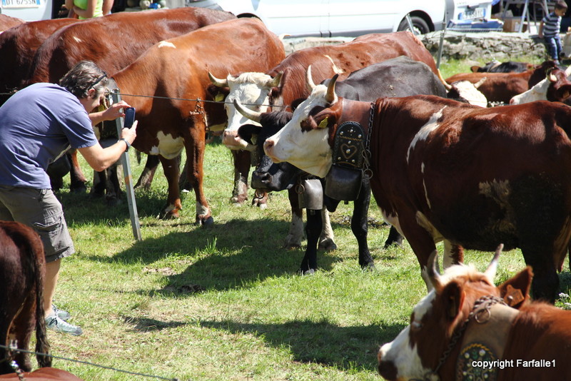 You may be wondering why the cows were all tied up in that big field. The reason is that each herd was judged, and a prize awarded to the herd deemed to be in the best condition after a summer spent up on the mountain. I’m ashamed to say I was thinking about lunch and missed the prize presentation, but I did get to the stand in time to catch a glimpse of the winners. It seemed to be a rather low-key part of the event.