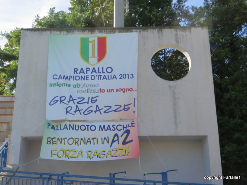 A sign on the church roof? Yes! There were two helicopters in constant attendance on the race providing real-time non-stop television coverage. They flew quite low, and I’m sure Caprile’s cheerful welcome was quite legible to those on board. The sign reads, Caprile greets (welcomes) The Giro.