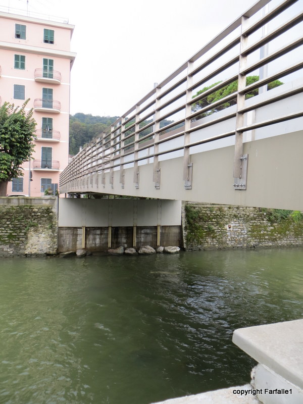 Rapallo did a bit of planning a few years ago. To prevent debris from catching on a bridge that might then back up the Boate River, they decided to rebuild it so that it could be raised in times of flood. Why? There is a new cathedral being finished upstream and a large underground parking area is part of the project. The goal was to keep the parking safe and dry. They were able to raise it yesterday, no doubt to the satisfaction of all involved in the project.