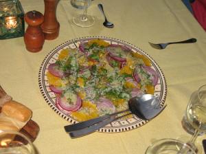 Note: if you prefer your salads served in a bowl, you can use the same ingredients but cut the oranges and onions into cubes and toss all together with the dressing.