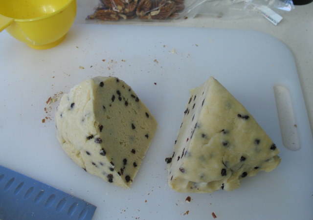 Dissolve the yeast in the warm milk and let it sit until it has softened.  Put the flour, white sugar and salt in a bowl and cut in the 1 cup butter until it looks like tiny peas.  Add the 1/2 cup cream, eggs, yeast and currants and mix well.  Cover and chill for at least two hours.  (You can do all this the day before you want to bake and let the dough rest in the fridge over night.  Just be sure it’s well covered so it doesn’t dry out.)